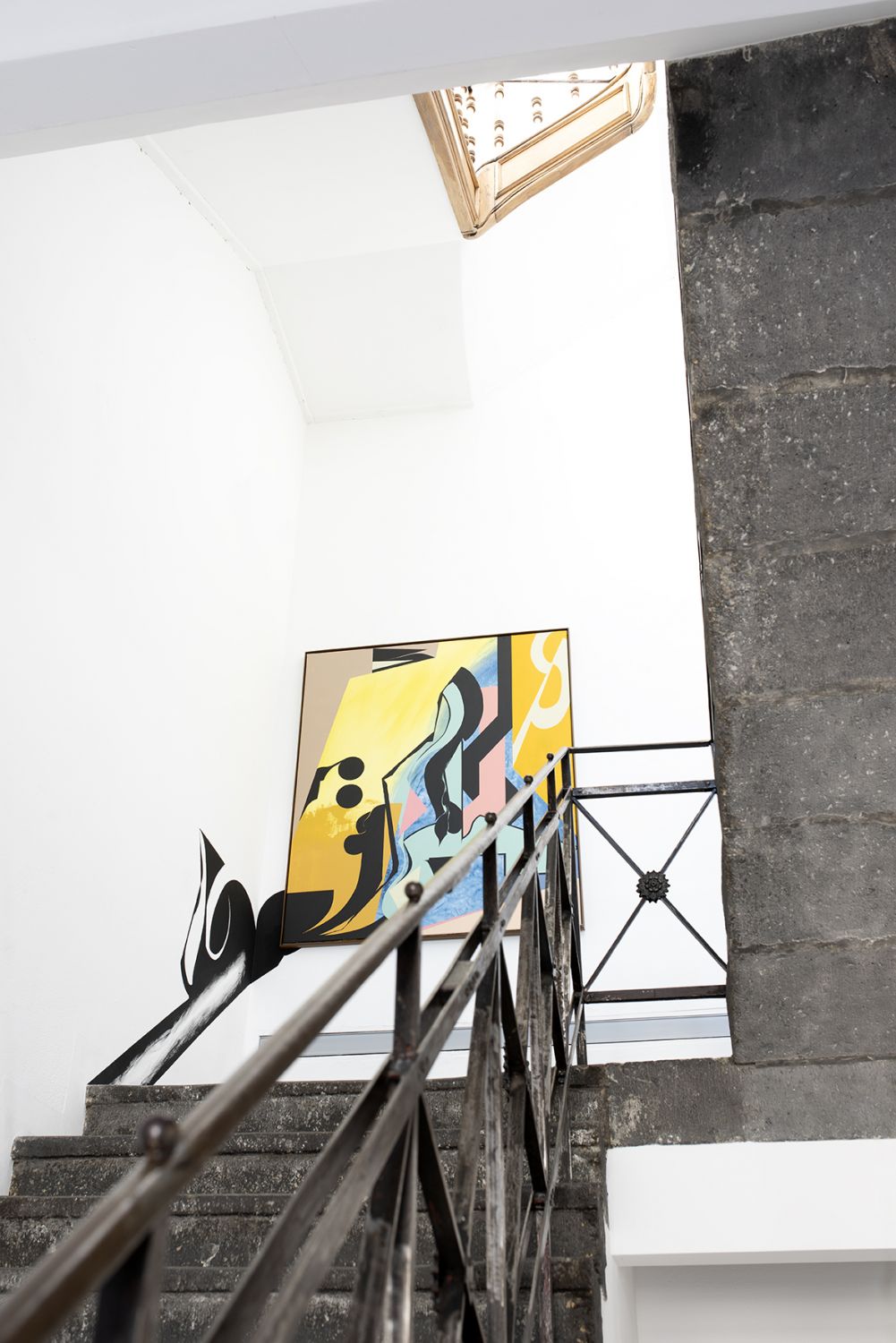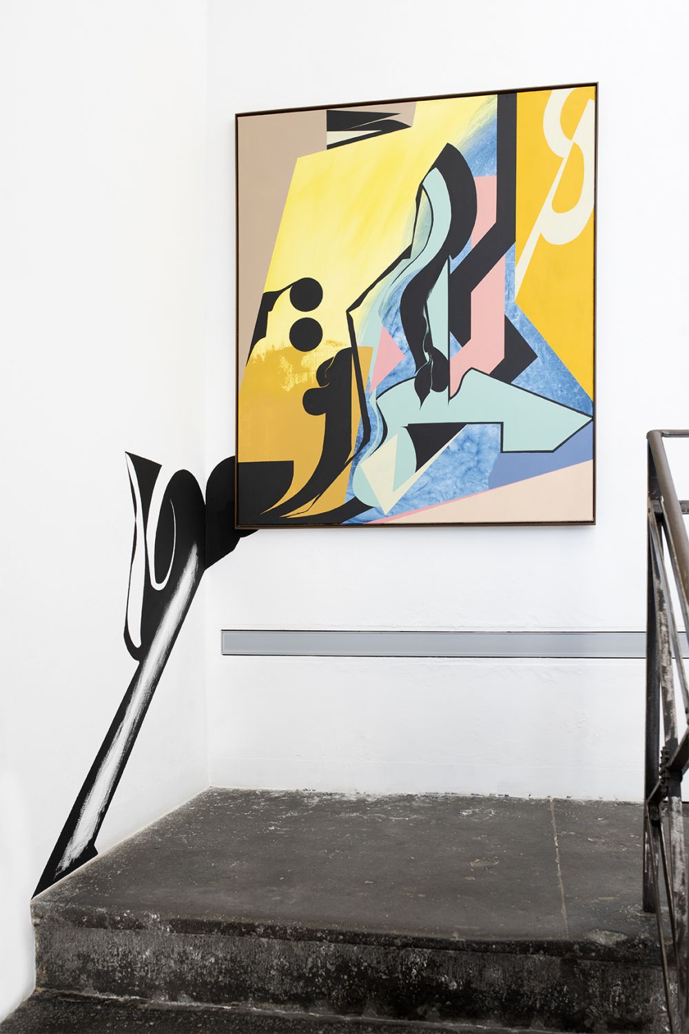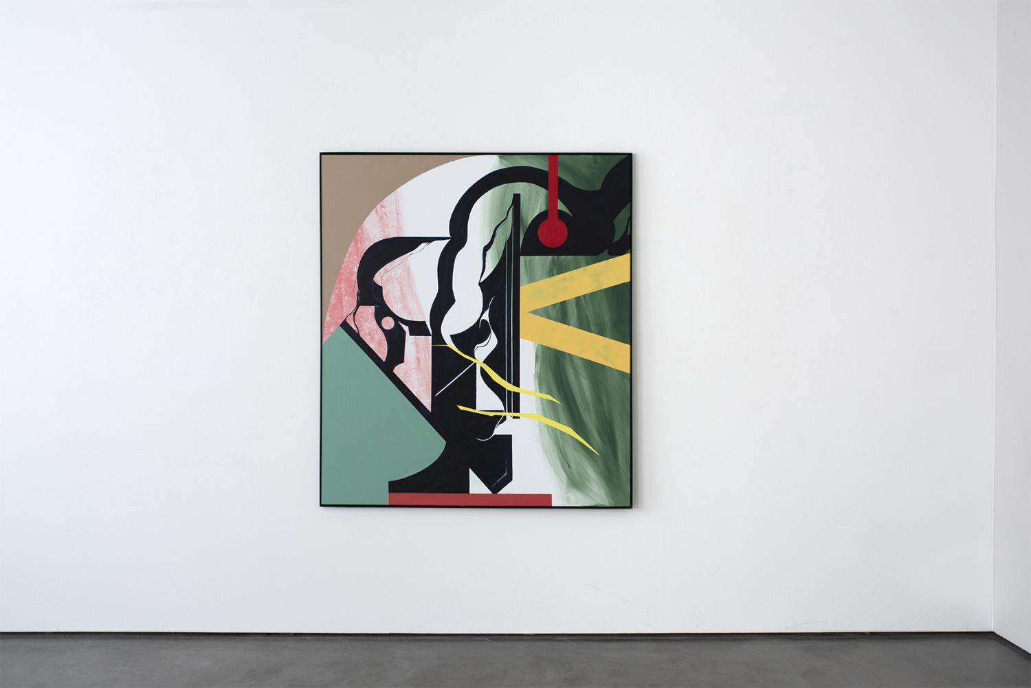 Alexander Schulz' first solo presentation vollkommen fine at the Judith Andreae Gallery. Born in West Berlin and raised in East Berlin, Alexander Schulz has moved between different, sometimes contradictory visual spaces from the very beginning. This biographical experience of simultaneity and transition may explain something of the matter-of-factness with which opposites are allowed to coexist or merge in his painting without being dissolved. His painterly process is based on empathy and abstraction from the things that surround him every day. He keeps a material diary in which he collects fragmentary references to architecture, landscape, everyday objects and media images. From these visual notes, he develops a multi-layered web of colours and forms in which personal experience and painterly composition overlap.